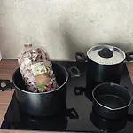 К услугам гостей кухня с микроволновой печью, электрочайником и кухонной утварью, а также кофеваркой.